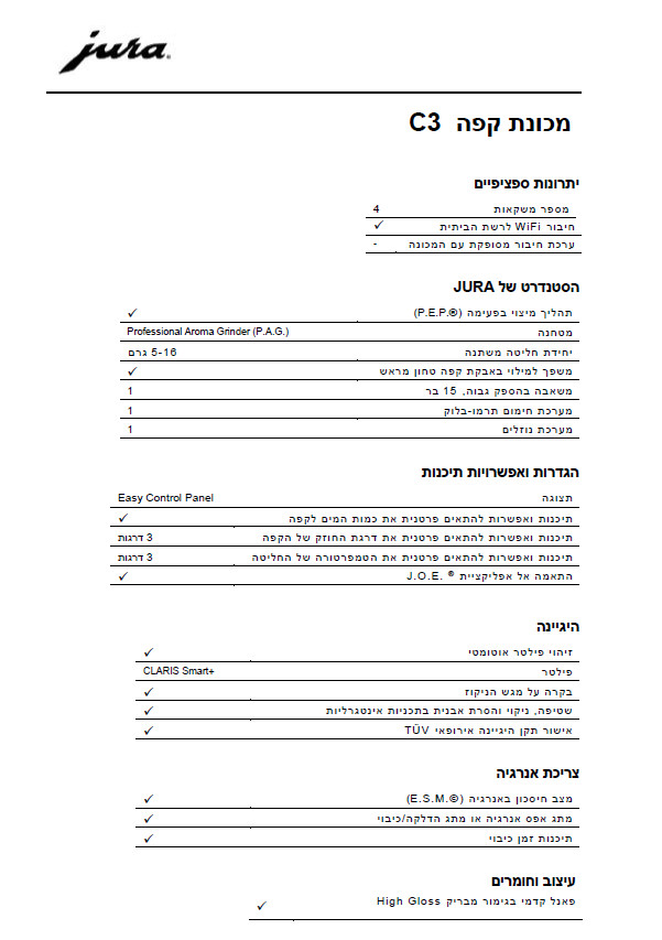 לשאול שאלה עבור מכונת קפה יורה C3 אנא מלא/י את הטופס הבא: